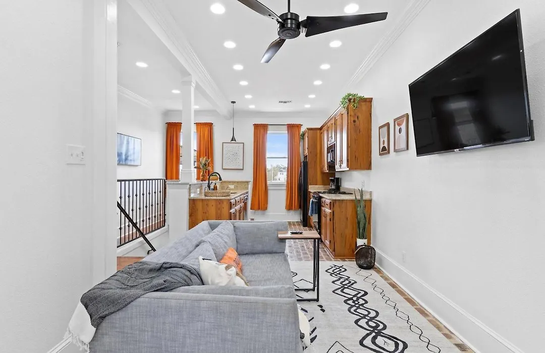 Refrigerador e forno, bem como outras comodidades auto-suficientes, como máquinas de café/chá, são fornecidos numa cozinha totalmente equipada. Servindo culinária americana, The Ruby Slipper Cafe está localizado a uma curta distância desta propriedade. A paragem mais próximo é Flix New Orleans, localizado a cerca de 600 metros de distância.
